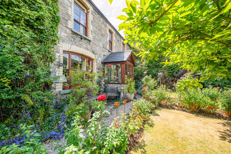 The private, mature gardens complement the house and offer several seating areas from which the views can be enjoyed. The property is approached via a wooden 5 bar gate giving access to a substantial parking and turning area. The generous, private gardens lie to the rear of the house and are a haven for wildlife. The front of the house adjoins the lane with a parking space. The house is approached from the driveway, up a set of shared stone steps to the front patio and pretty front porch. The gardens have been created over the past 30 years and comprise a number of mature plants and trees including roses, rhododendrons, hydrangeas, fuchsias, acers and a beautiful magnolia tree. There is a vegetable garden, greenhouse, summer house, small orchard and 3 patios.
