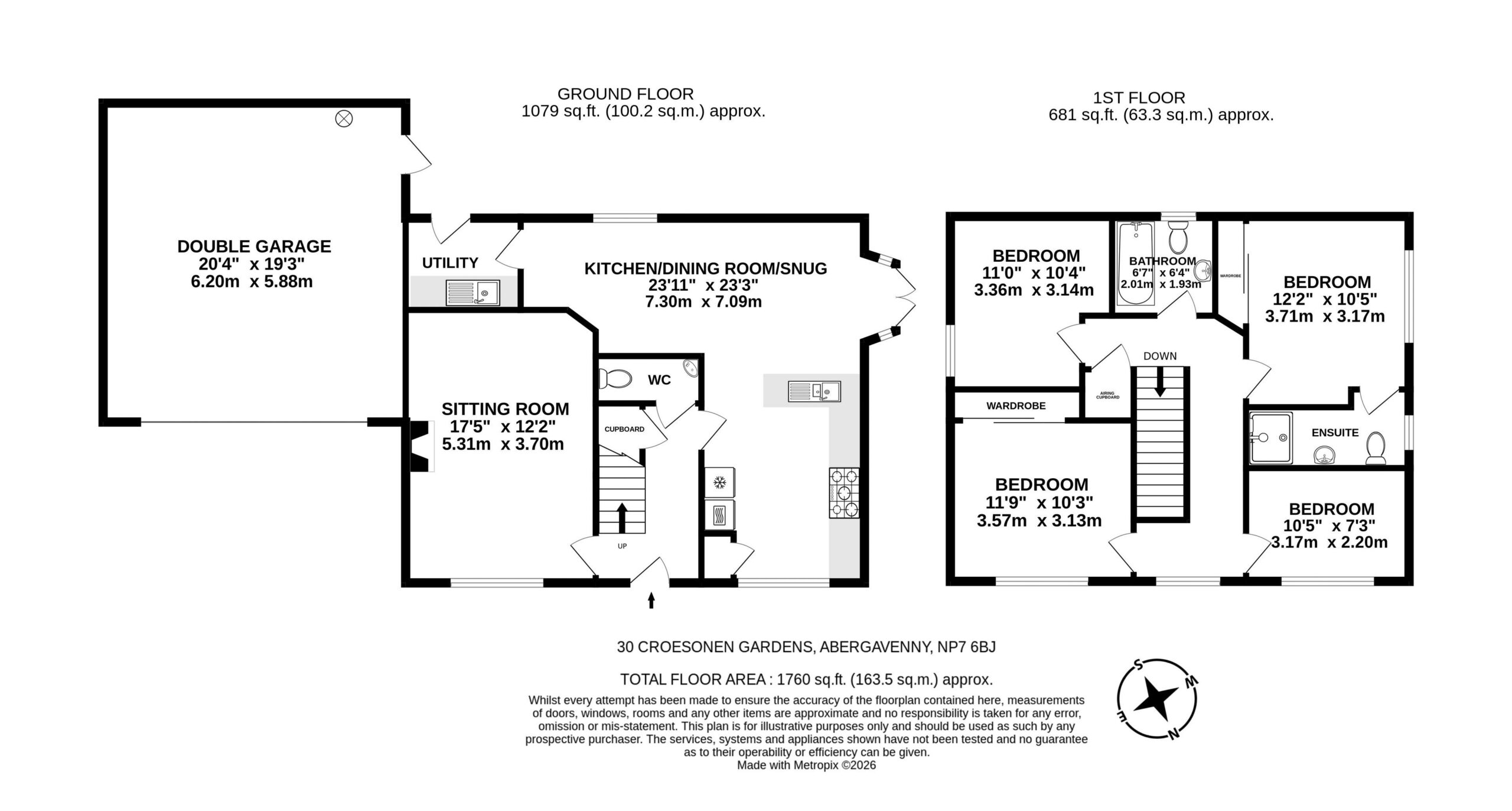 Croesonen Gardens is a select, popular residential area with its own small park. Local amenities include convenience stores and public houses within walking distance of the house. Abergavenny offers a wide range of amenities including primary and secondary schools, independent shops alongside high street stores, several supermarkets, doctors, dentists and a general hospital. There are good leisure facilities plus a cinema, theatre, library, numerous public houses and highly regarded restaurants both within the town and the surrounding area. The area is well known for being the ‘Gateway to Wales’ and is on the doorstep of the breathtaking Brecon Beacons/ Bannau Brycheiniog with the Monmouthshire & Brecon Canal a short distance away. Abergavenny has a bus station, mainline railway and excellent transport links via the A465, A40, A449 and onto the M4/M5 and M50 motorway networks.