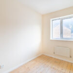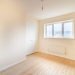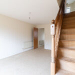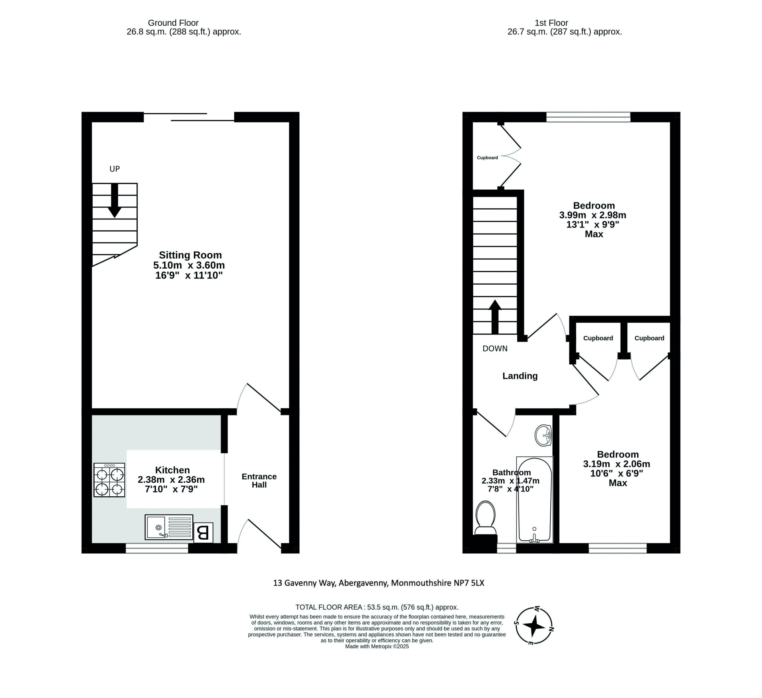 Wooden stairs rise from the sitting room to the first floor, where there are two bedrooms, both with wooden flooring and built-in storage. A main family bathroom completes the first floor.