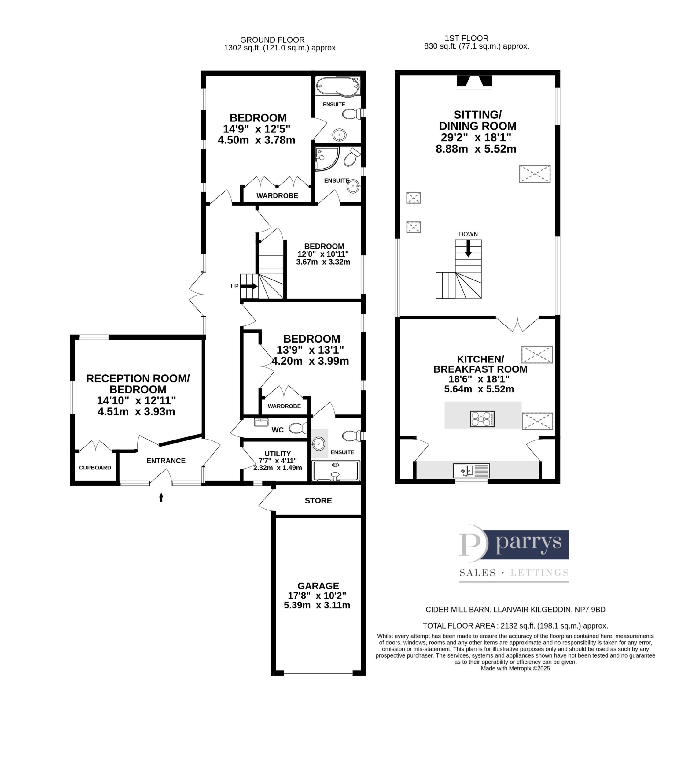 All measurements, floorplans and land plans are for illustrative purposes only and are approximate. Measurements are quoted in imperial with metric equivalents and are for general guidance only. Whilst every effort has been made to ensure to accuracy, these sales particulars must not be relied upon and all information is to be verified by the solicitor acting for the buyer(s). Please note Parrys have not tested any apparatus or services and, therefore, no guarantee can be given that they are in working order. Photographs are shown for marketing purposes and it must not be assumed that any of the fixtures and fittings shown are included with the property, unless specifically mentioned within the sales particulars, some fixtures and fittings may be available by separate negotiation.