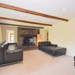 From the hallway a door leads to the spacious living room with a feature stone inglenook fireplace, log burning stove, beamed ceiling, leaded windows with wooden shutters and a door to the garden. From the living room a door leads to the cosy sitting room, ideally used as a snug or office with built-in bookcase and with wonderful views of the garden.