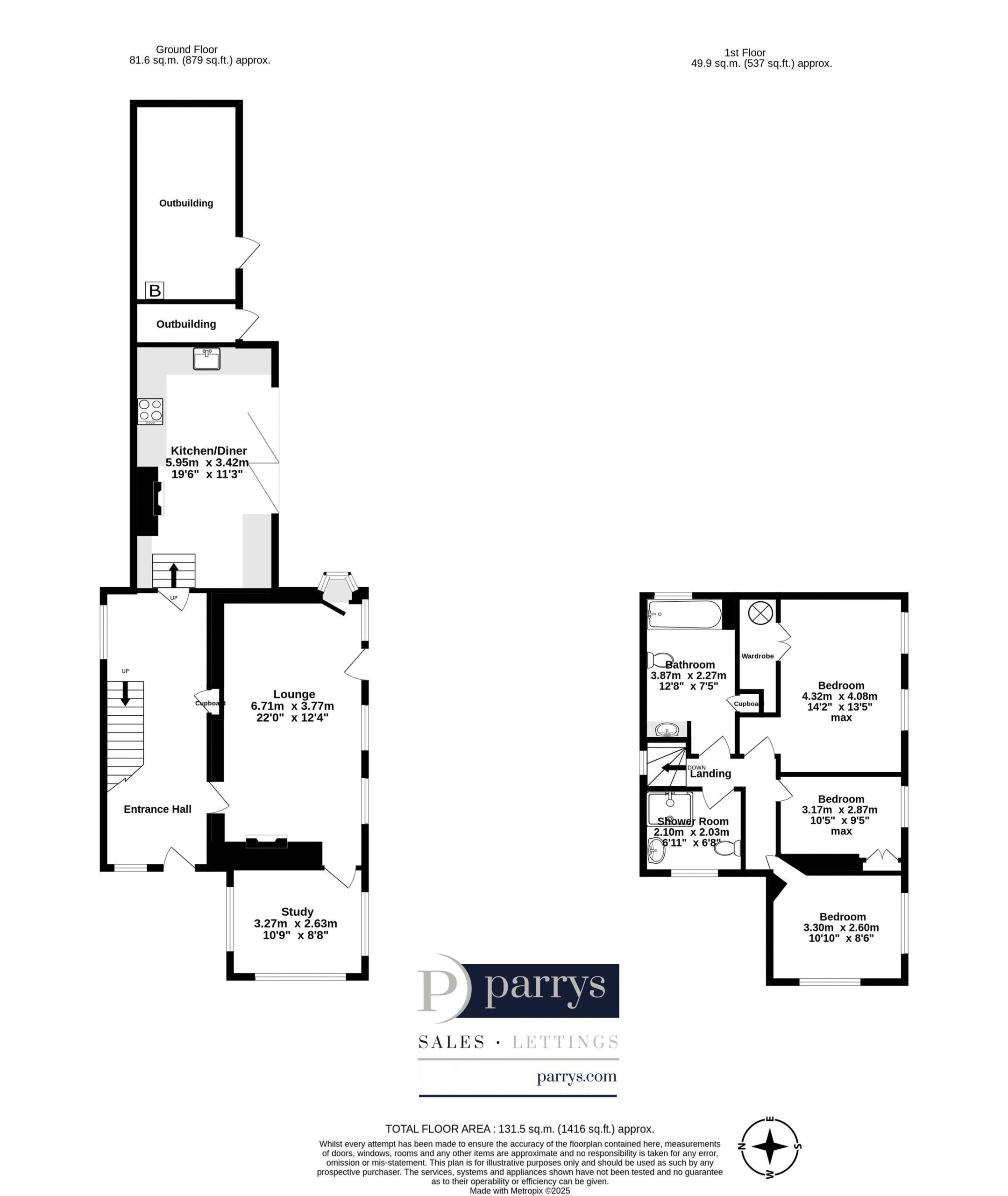 All measurements, floorplans and land plans are for illustrative purposes only and are approximate. Measurements are quoted in imperial with metric equivalents and are for general guidance only. Whilst every effort has been made to ensure to accuracy, these sales particulars must not be relied upon and all information is to be verified by the solicitor acting for the buyer(s). Please note Parrys have not tested any apparatus or services and, therefore, no guarantee can be given that they are in working order. Photographs are shown for marketing purposes and it must not be assumed that any of the fixtures and fittings shown are included with the property, unless specifically mentioned within the sales particulars, some fixtures and fittings may be available by separate negotiation.