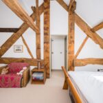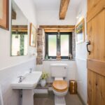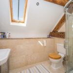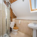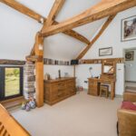 An oak wooden staircase rises from the kitchen/dining room to the first floor landing. On the first floor are three double bedrooms all with en-suites and exposed beams. The principal bedroom suite is situated to one side of the landing, the bedroom has exposed timbers and a wonderful vaulted ceiling, there are views to the front elevation towards open countryside, a walk in wardrobe and en-suite bathroom. On the opposite side of the landing are two bedrooms, both with en-suite shower rooms, one of the bedrooms has a range of fitted wardrobes.