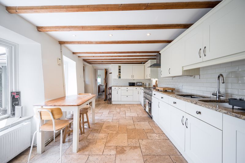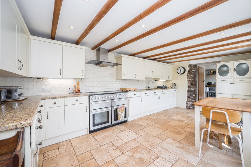 Enter through a stable style door into an impressive country style kitchen with much char-acter including exposed timbers and part stone walls. It’s features are combined with a good range of kitchen base and wall cupboards, granite worksurfaces, range style cooker and space for a breakfast table, the kitchen flows through into the useful and spacious utility area, with additional kitchen cupboards and undercounter space for white good appliances. This practical part of the house also provides internal access to the garage, useful storage cupboard and the downstairs W.C.