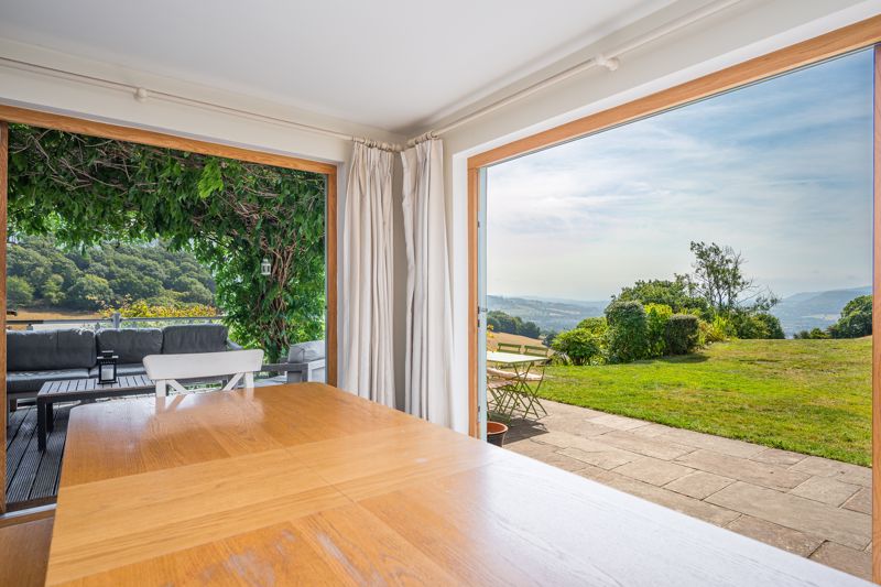 The main hub and living area of the ground floor is open-plan and is perfect for modern day family living. The sitting room features a fireplace, incorporating a woodburning stove. Located adjacently is the dining room with two separate bi-folding doors creating easy access to the south-facing garden and sheltered decked loggia, a tranquil spot to step outside, relax and enjoy the wonderful far reaching views. There is a useful storage area accessed from the dining room, which completes the ground floor accommodation.