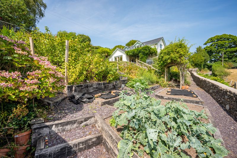 The gardens are predominantly flat, stepping away from the patio and decked area of the property is a spacious lawn area, south facing and providing fantastic far reaching views over the town of Abergavenny and the surrounding countryside. Steps lead down to an area which is currently dedicated to multiple raised beds. There is also a small pond, two garden sheds and an array of fruit trees. The property comes with off road parking for several vehicles, garage, with a conveniently located electric car charging point and porch area with space for a log store.