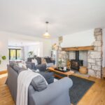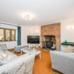 Enter through the front door into the welcoming entrance hall, an oak staircase with glass balustrade rises to the first floor with doors leading to the two reception rooms. There is a useful understairs storage space located in the entrance hall and a further door at the rear of the entrance hall opening into the spectacular open plan kitchen/living/dining room. The traditional sitting room has an oak floor and skirting boards and a feature brick fireplace with a wood burning stove set on a stone hearth.